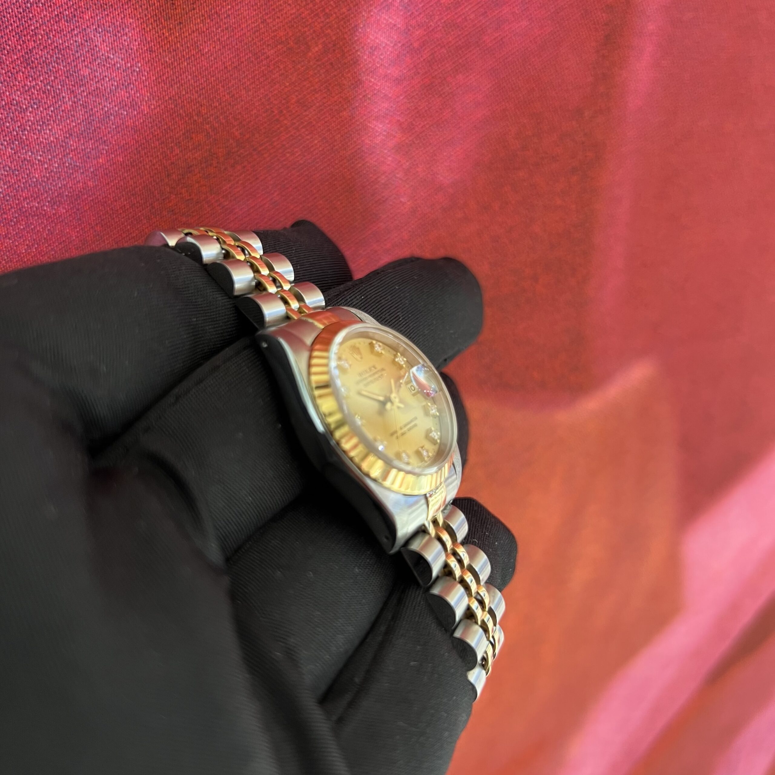 Champagnerfarbenes Zifferblatt mit Diamantbesatz